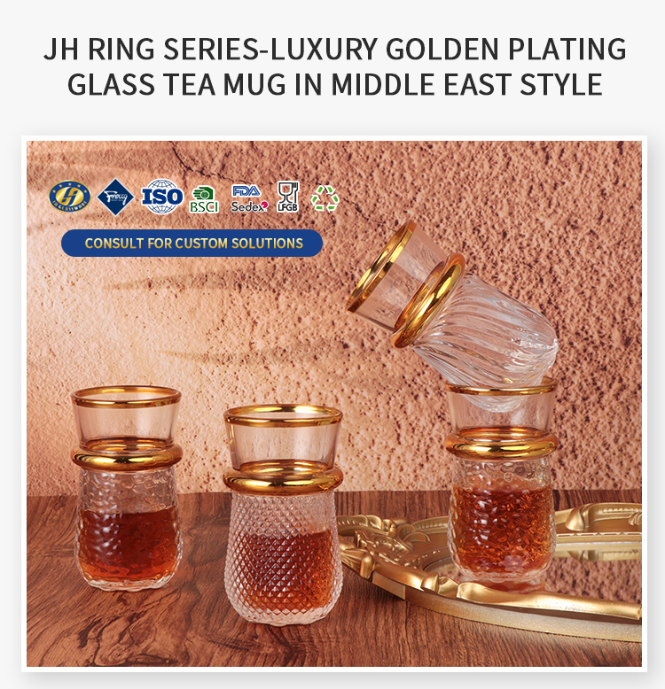 Factory Wholesale High Quality 6Pcs/set Coated Golden Espresso Cup Turkish Tea Glass Cups Set With PVC Packing