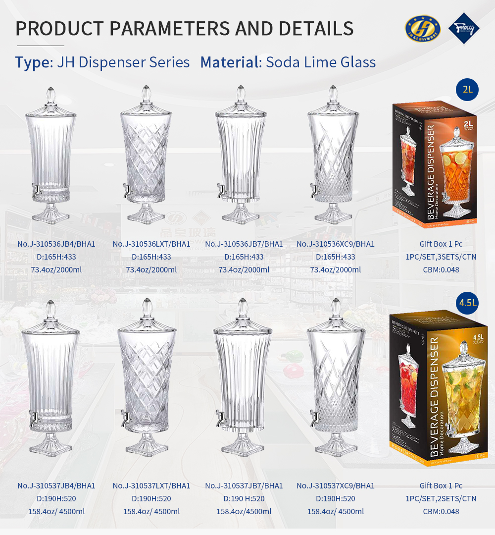 2/3/4/5L High Quality Glass Jars Beverage Dispenser for Hotel Party Engraved clear Juice Dispenser With Metal Tap