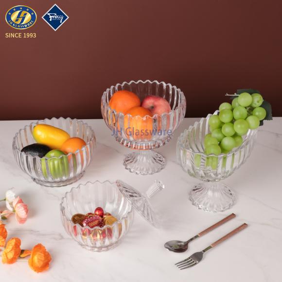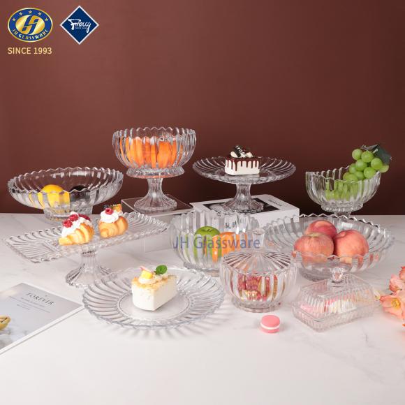 Luxury Crystal Glass Fruit Plate Bowl Modern Design Large Dry Fruit Tray with Lid Snack Candy Cup for KTV Hotel Decoration