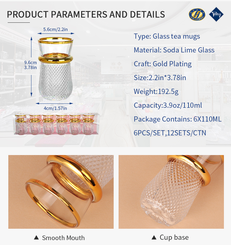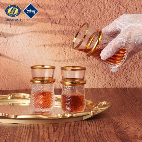 Factory Wholesale High Quality 6Pcs/set Coated Golden Espresso Cup Turkish Tea Glass Cups Set With PVC Packing