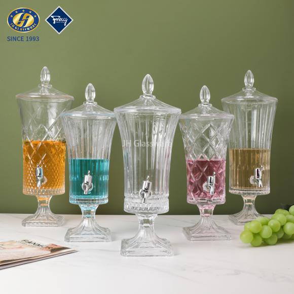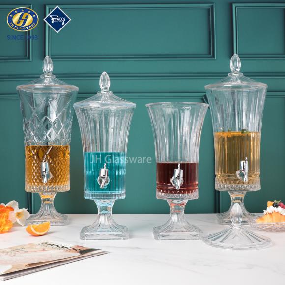 2/3/4/5L High Quality Glass Jars Beverage Dispenser for Hotel Party Engraved clear Juice Dispenser With Metal Tap